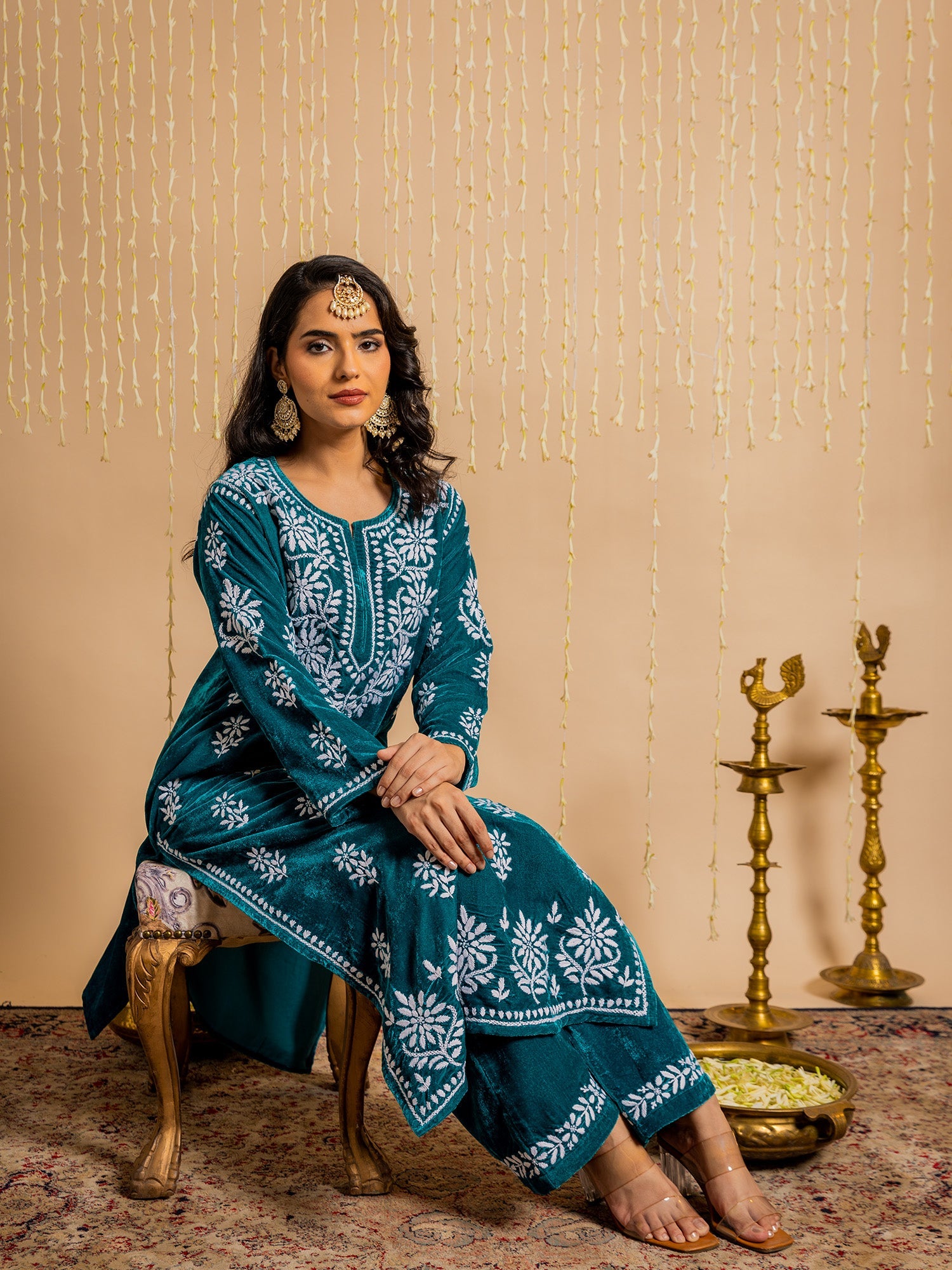 Now let us look at a few incredible Chikankari festive kurta sets that you can wear during this season of celebration.