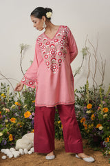 Home Floral short kurta Kashmiri Aari Work Short Kurta - Pink