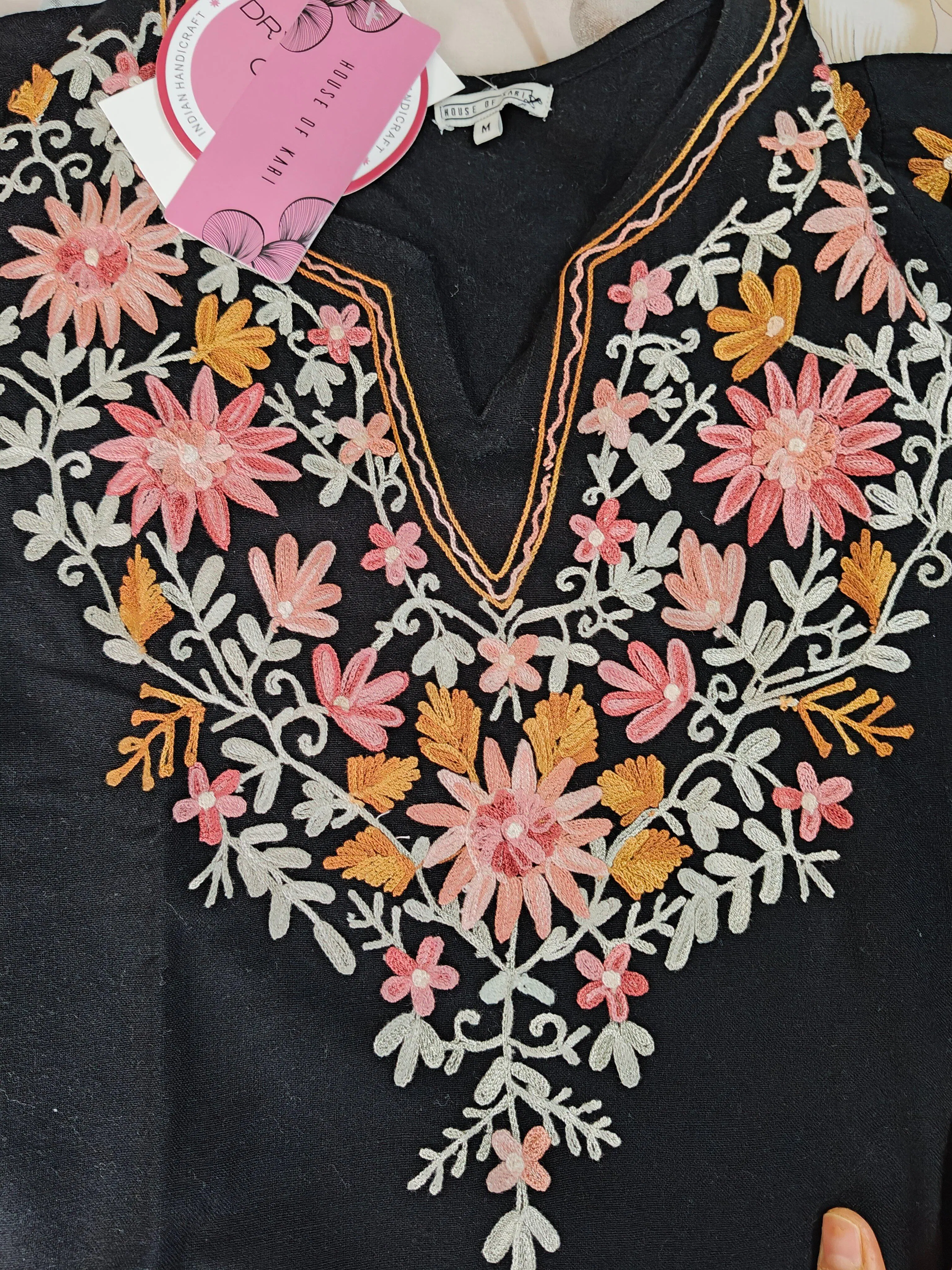 Woolen Kashmiri Aari Kurta Set – Black with Farsi Bottoms