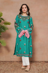 Introducing our captivating Lavender Long Kurta from the "Falak" collection, where "Falak" symbolizes the celestial beauty of the heavens. Crafted with precision, this kurta is adorned with delicate lace work on the sleeves and neckline, featuring a deep V-neck design for a touch of allure. Each garment is beautifully crafted with Kashmiri Aari work, renowned for its intricate craftsmanship and rich cultural heritage in the region of Kashmir. Pair it up with tailored trousers or palazzos for an elegant ensemble that exudes timeless charm and sophistication.