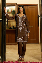 Celebrate this festive season in style with our Lilac Chikankari Kurta Set, crafted from premium viscose for a soft and luxurious feel. This elegant outfit features handcrafted white Chikankari embroidery, a 36-inch V-neck kurta, and matching straight-fit pants, making it the perfect festive ensemble.