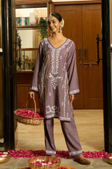Chikankari Kurta Set in Viscose – Lilac