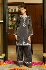 Chikankari Kurta Set in Viscose with Farsi Pants – Navy Blue