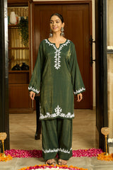 Step into festive elegance with this Navy Blue Chikankari Kurta Set crafted in soft viscose fabric. Adorned with delicate beige and green hand embroidery, this outfit beautifully blends traditional artistry with modern style. The 36-inch kurta with a stylish notch neckline is paired with comfortable Farsi pants, perfect for festive gatherings and cultural celebrations.