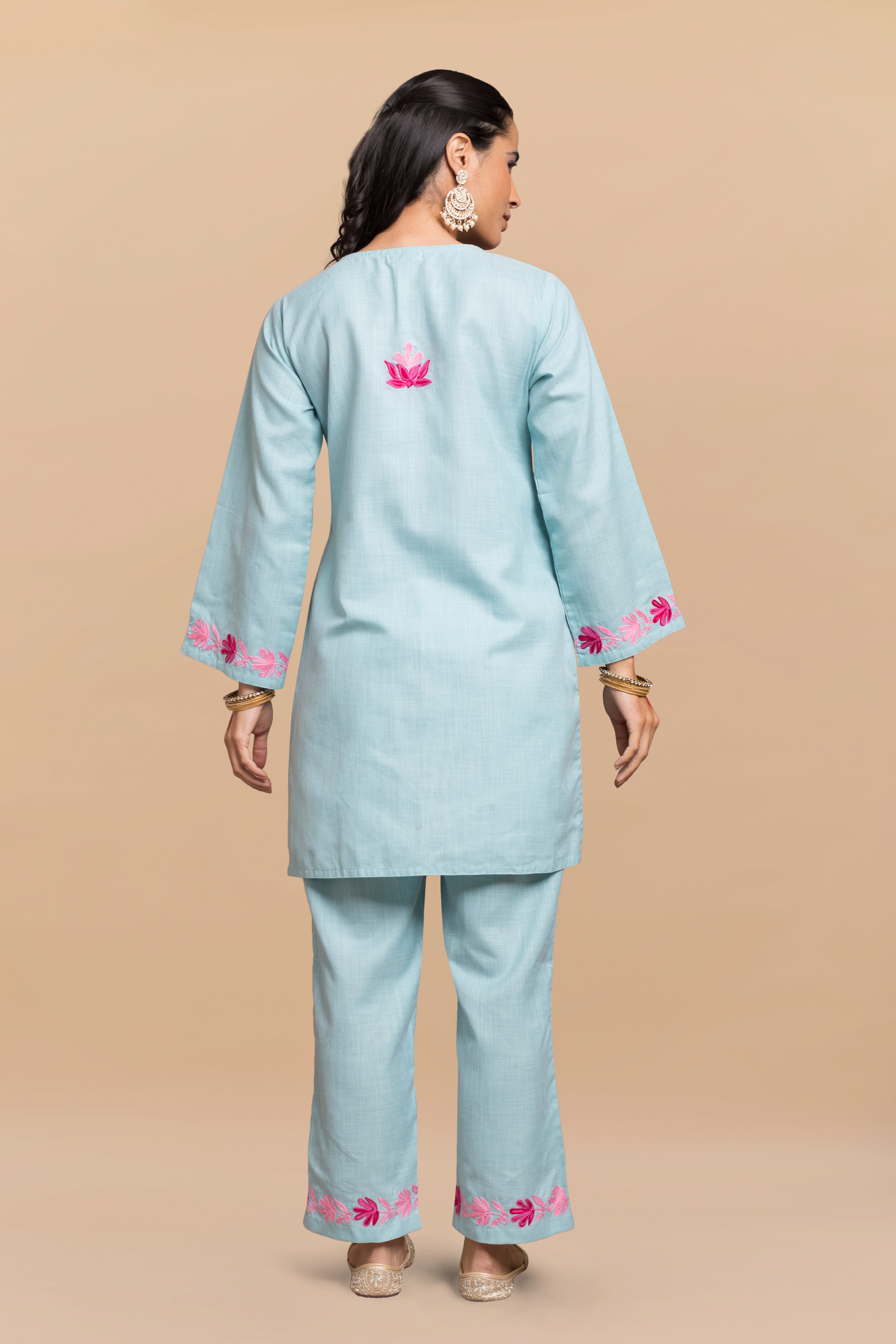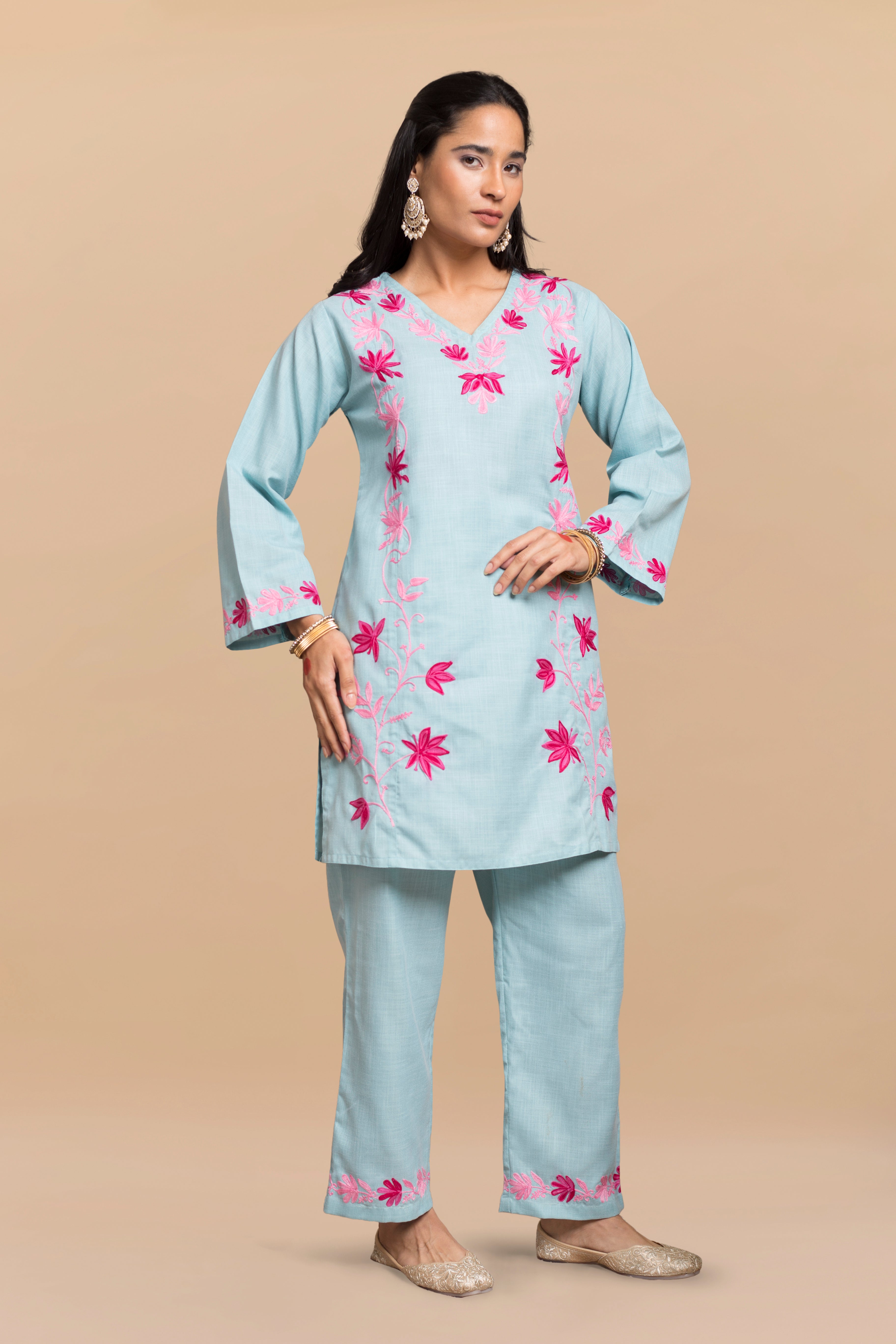 Falak Kashmiri Kurta Set - Turquoise Blue
