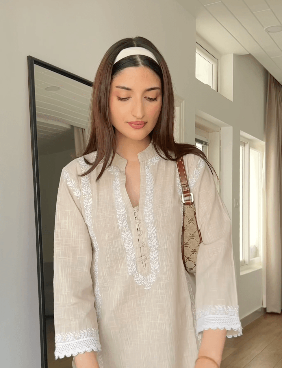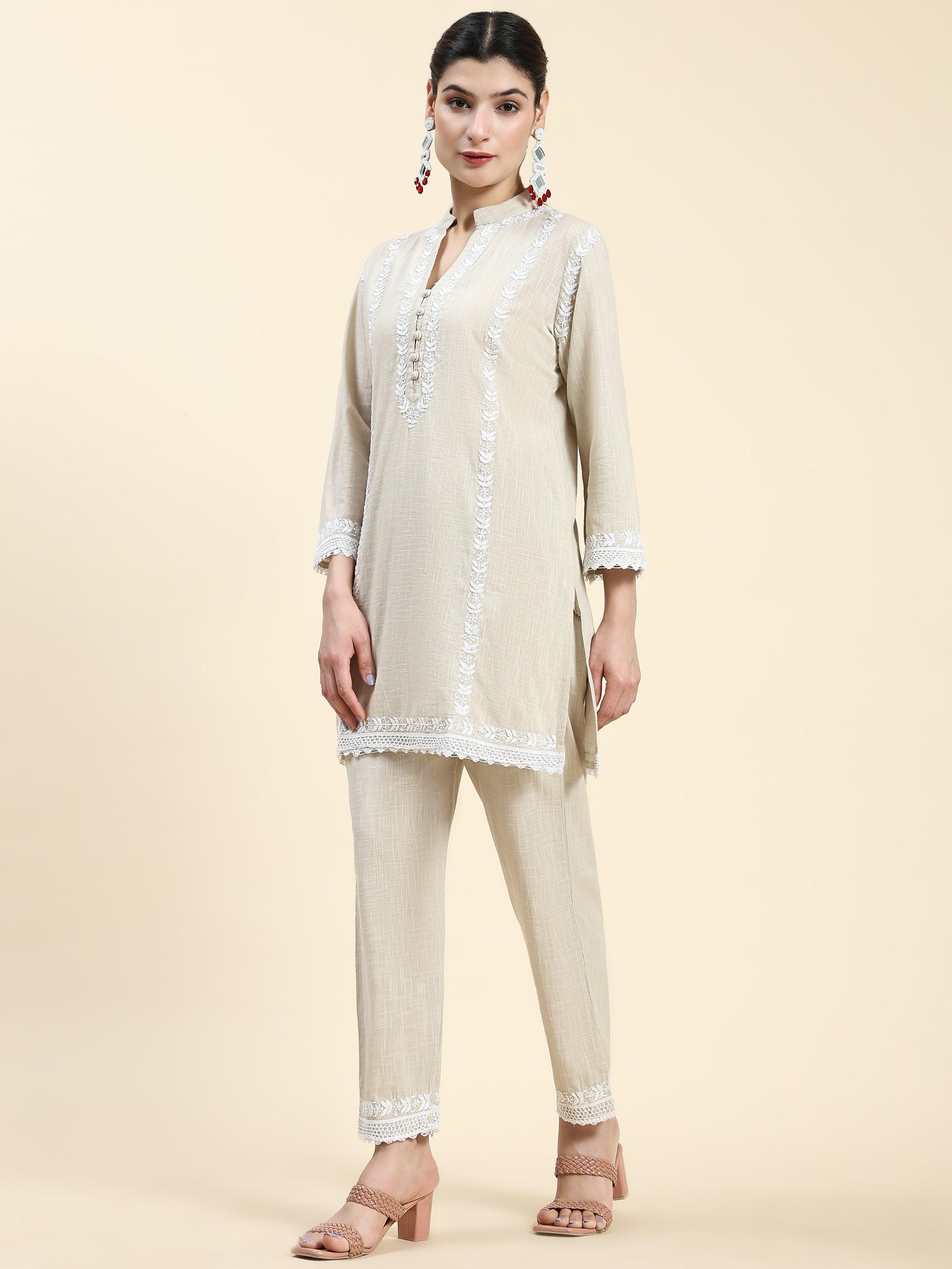 Farheen in Chikankari CO-ORD Set In for Women In Beige