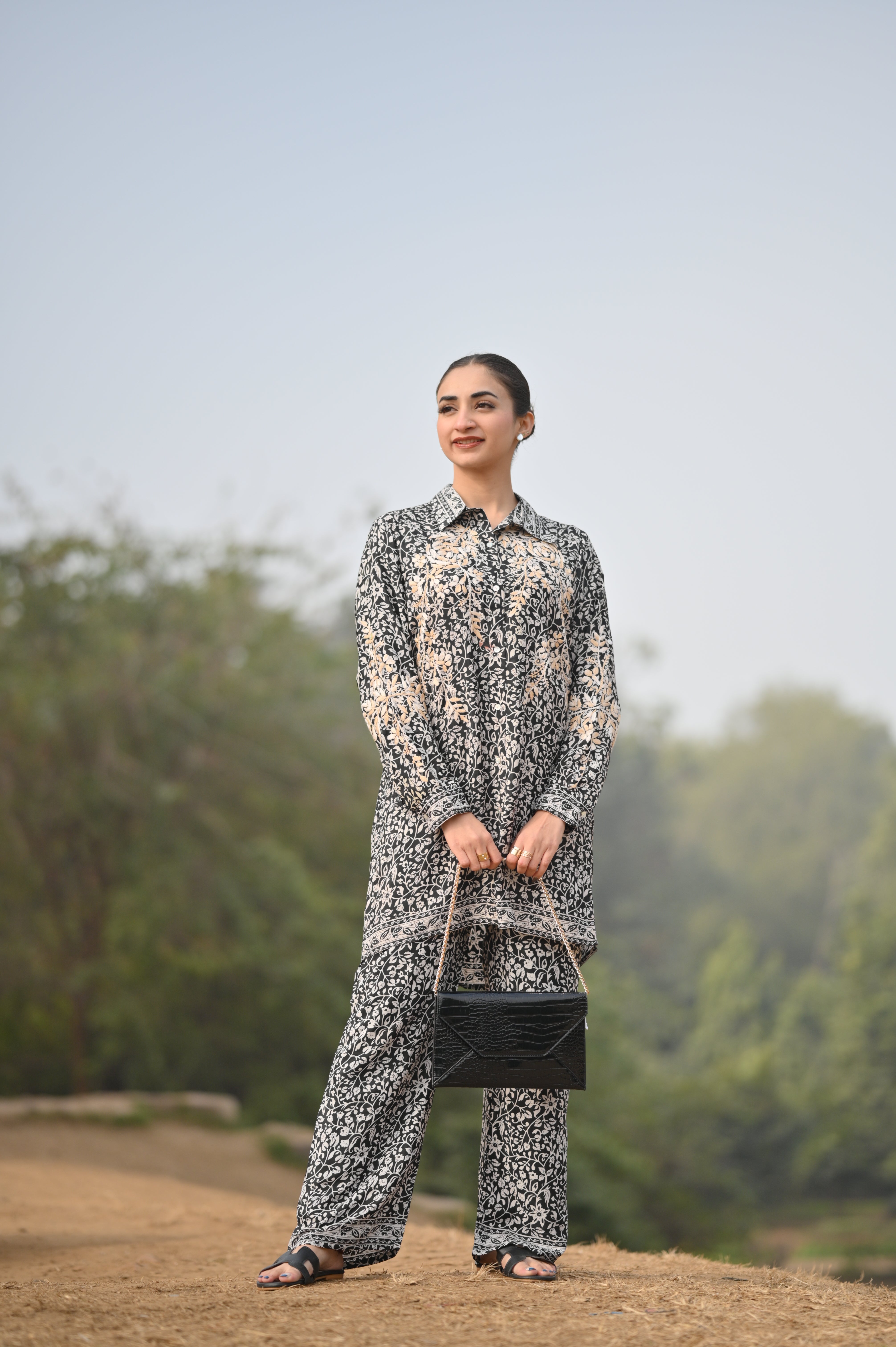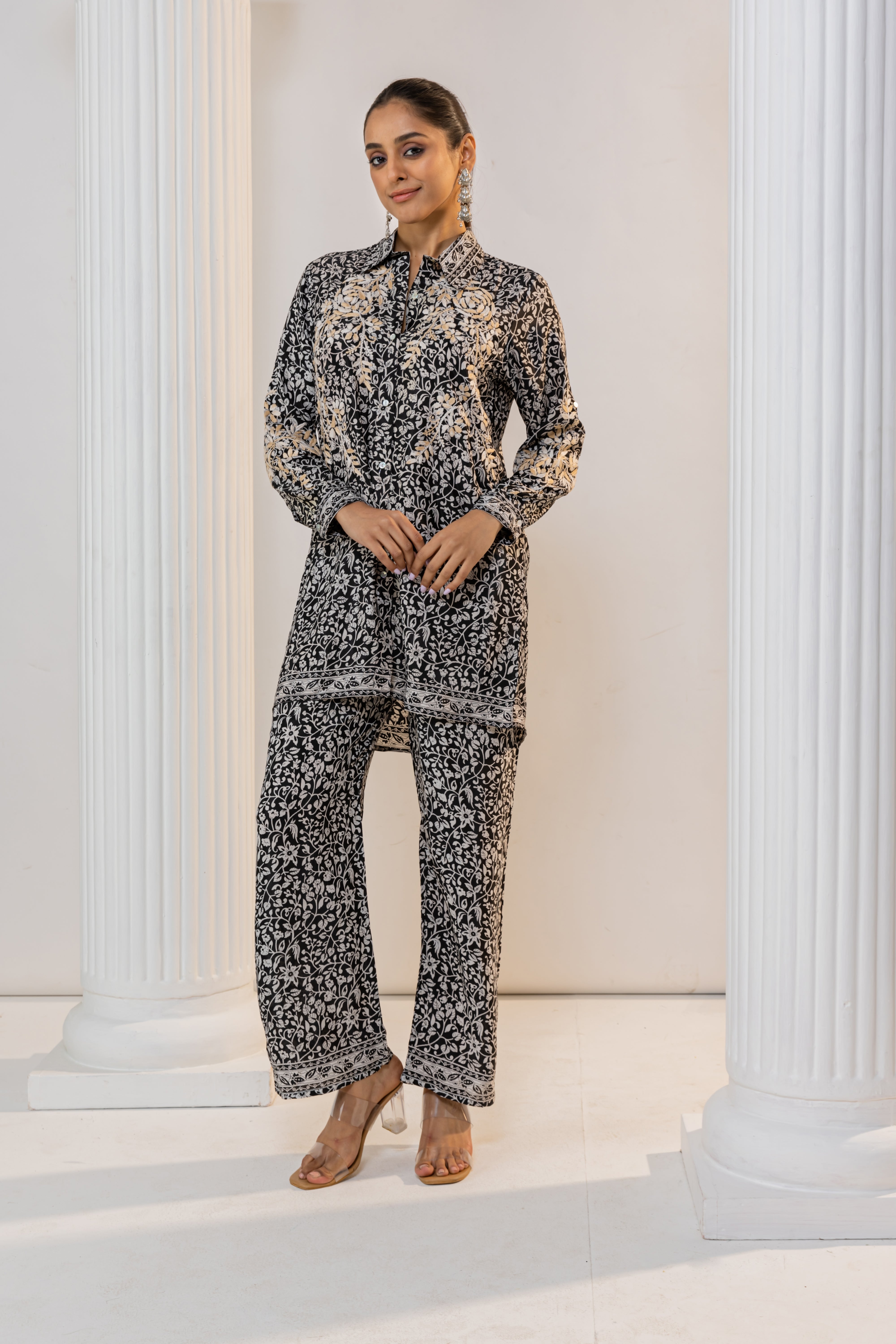 Gargi in Chikankari Polysilk Set for Women - Black Print