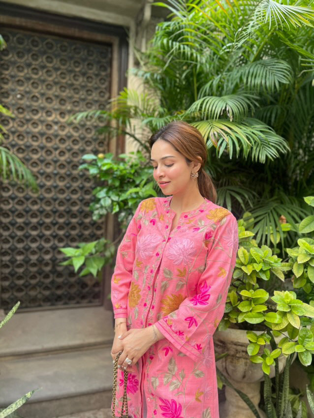 Haania in Kashmiri Aari Work Cotton Kurta Jacket – Pink