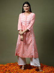 Noor Hand Embroidery Chikankari Long Kurti for Women in White