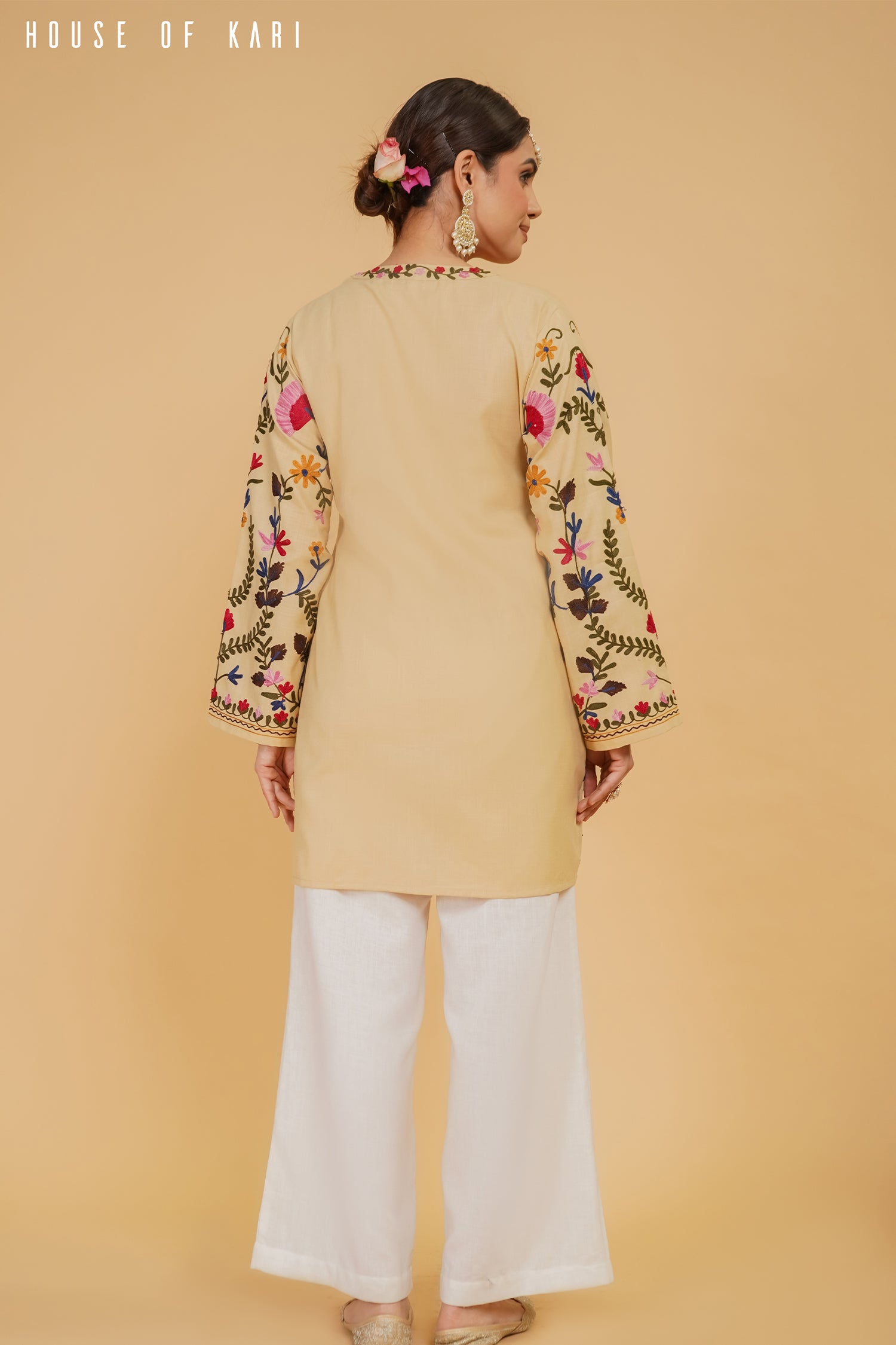 - ✔ Elegant Beige Color with handcrafted Kashmiri Aari embroidery