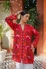 Kashmiri Aari Work Cotton Kurta Jacket – Red