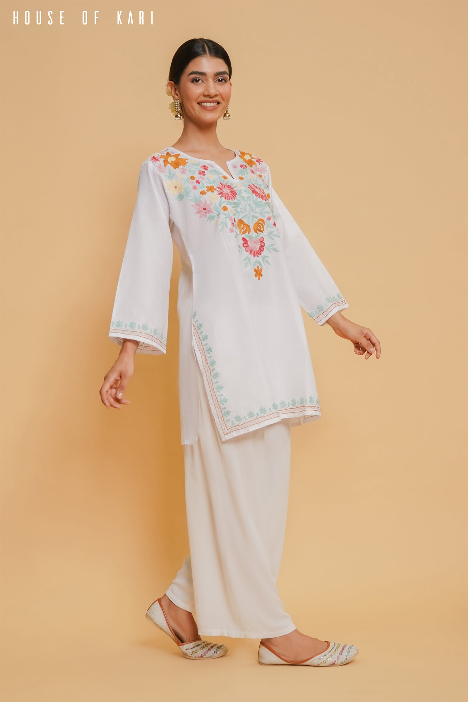Timeless Elegance in House of Kari’s White Kashmiri Aari Kurti