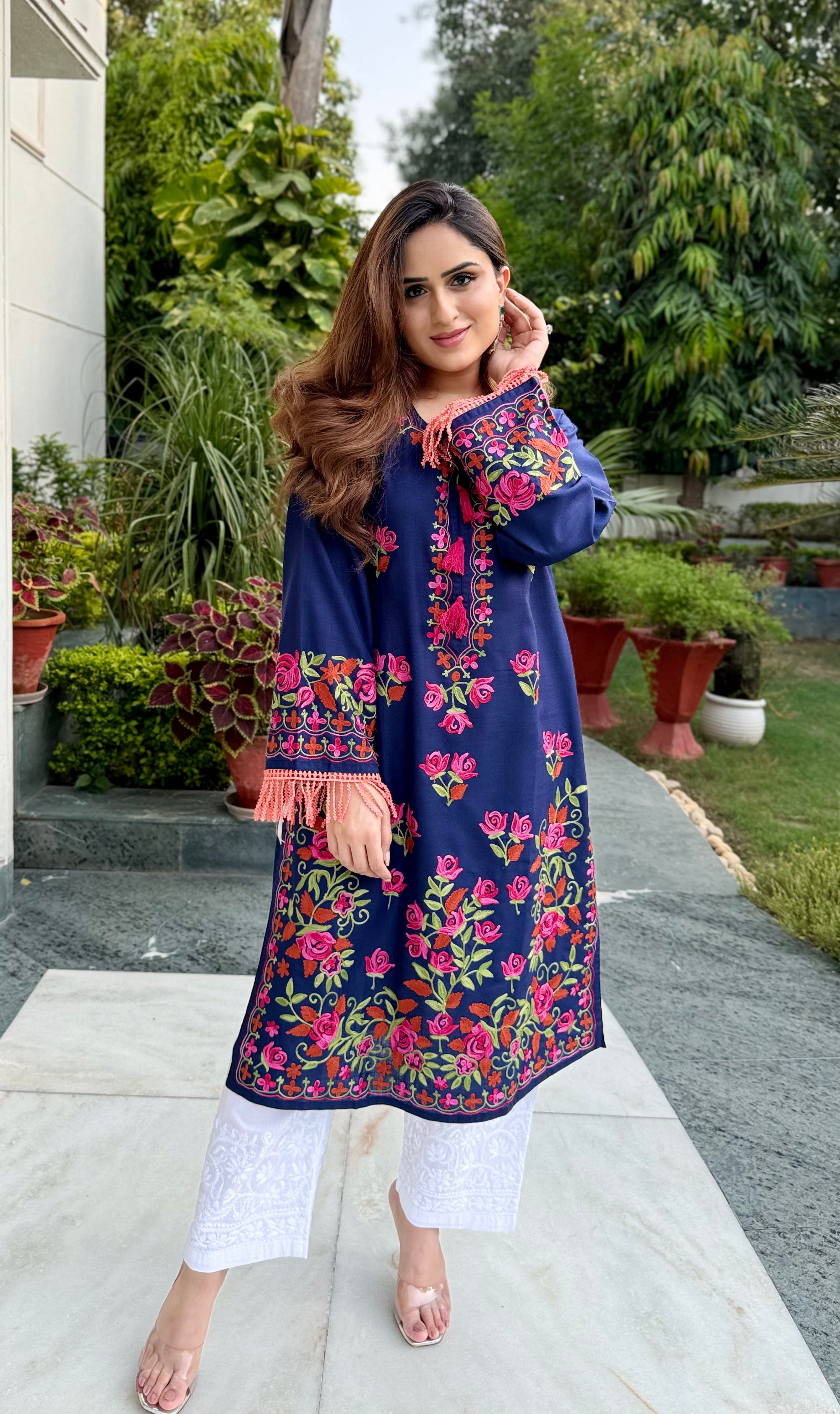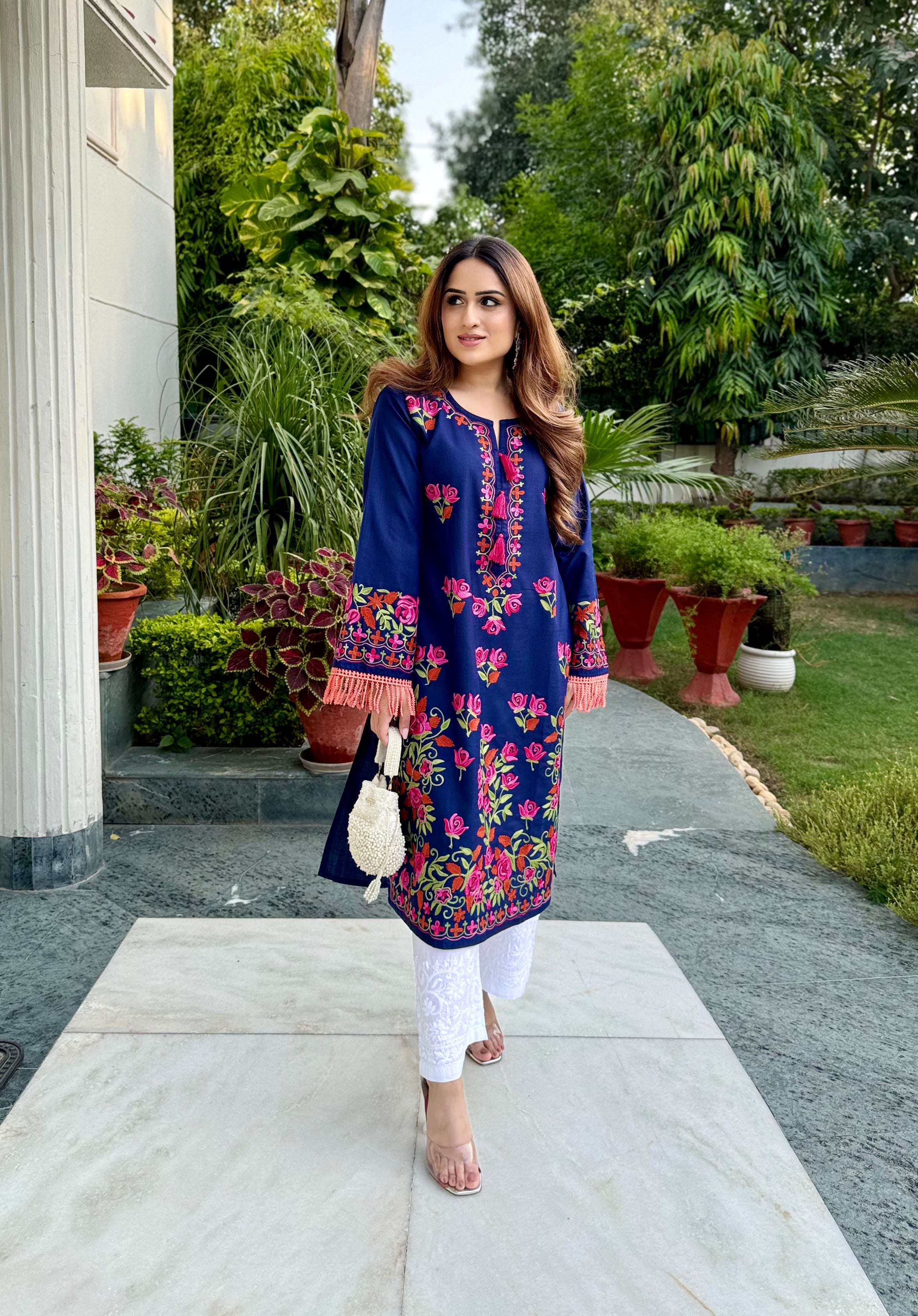Nikita in Falak Kashmiri Long Kurta- Navy Blue