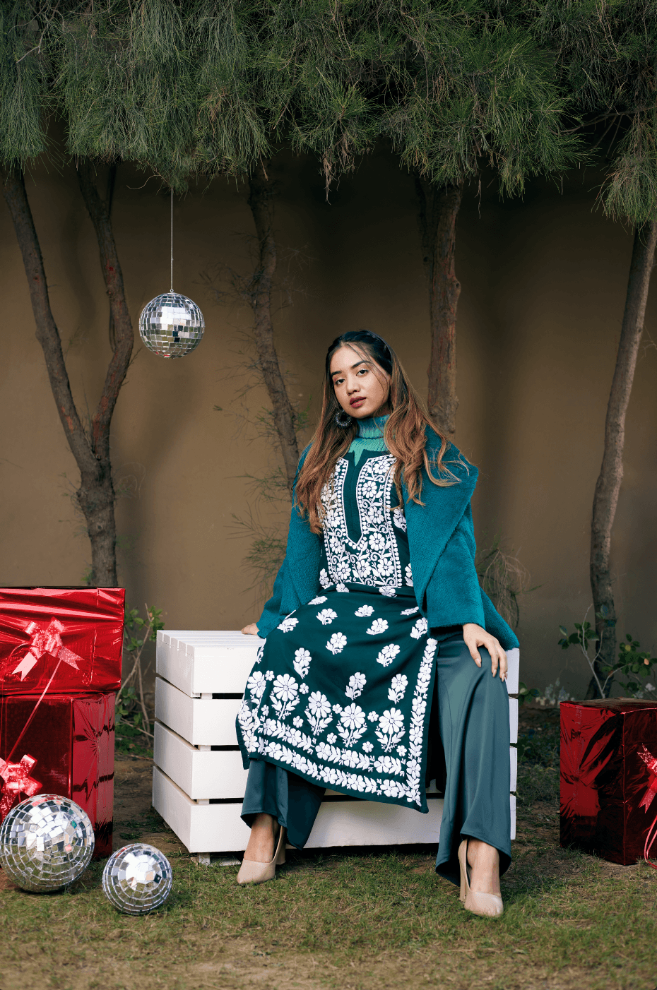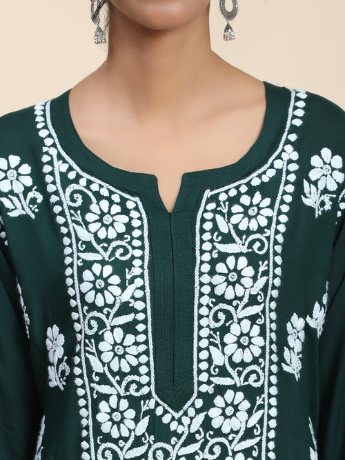 Premium Hand Embroidery Chikankari Kurta Modal Cotton- Green