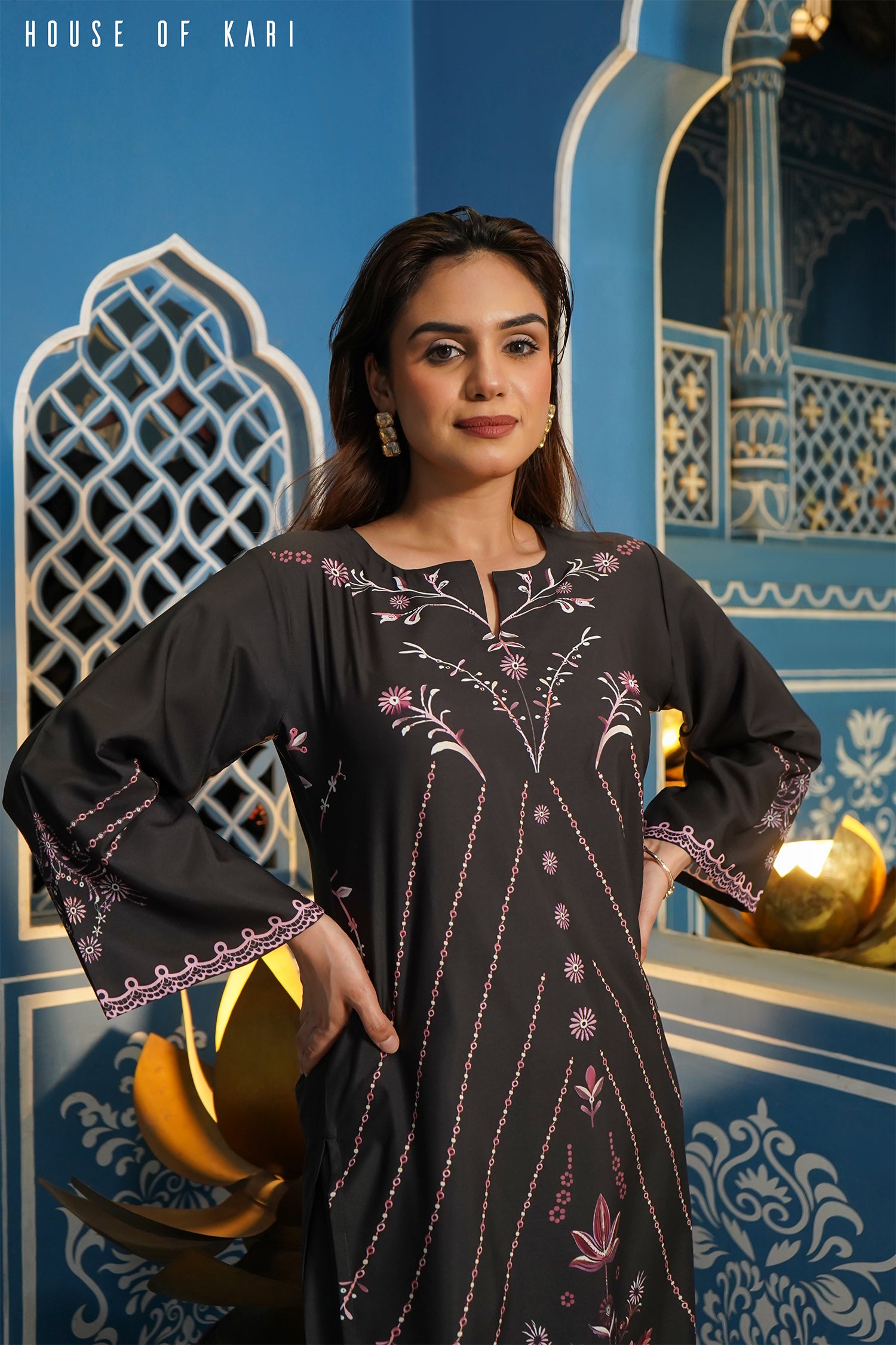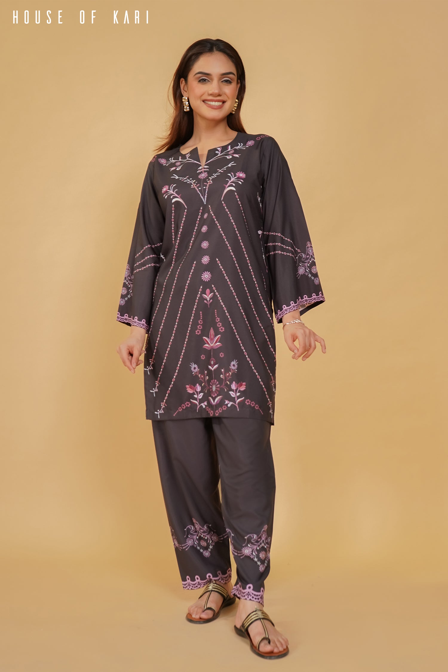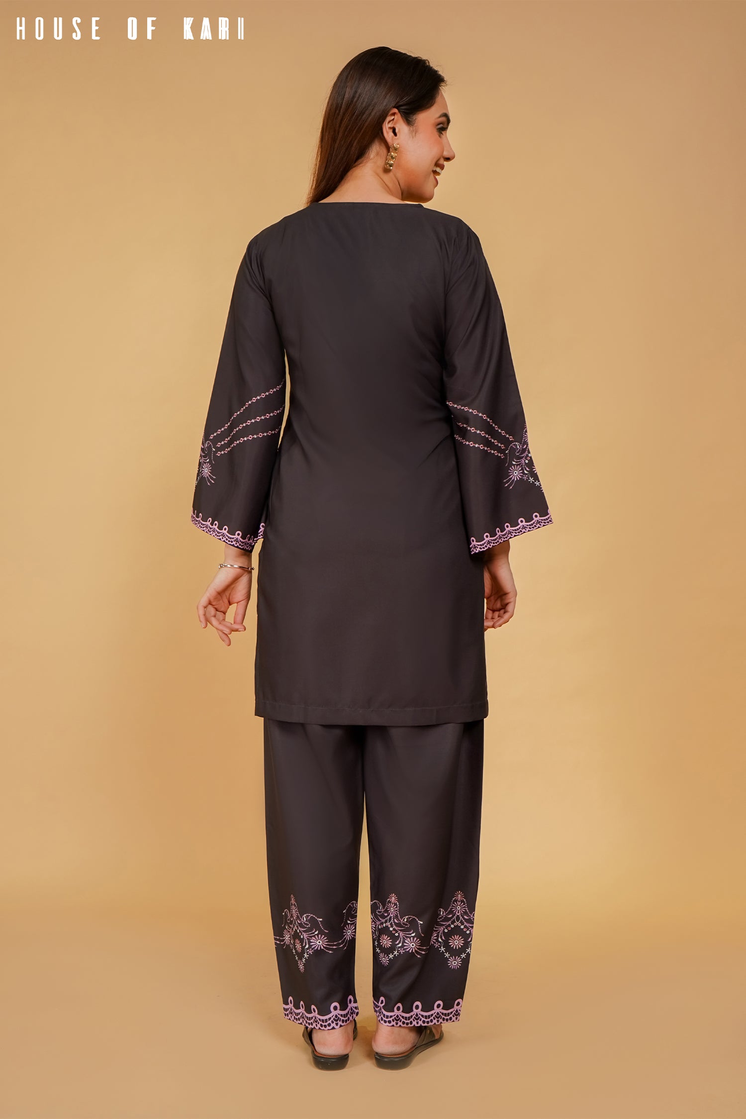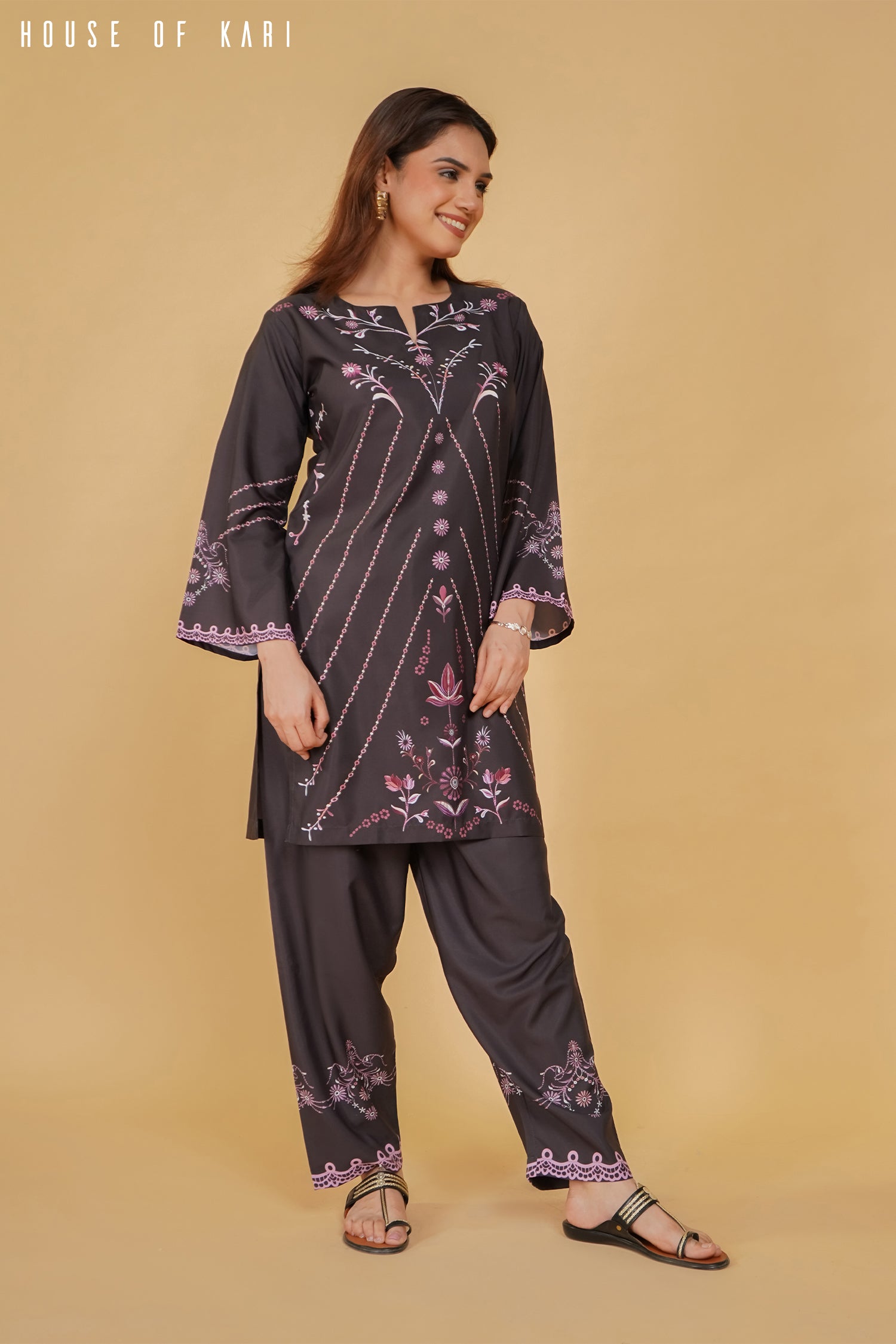 Printkari Poly Muslin Co-ord set in Black & Pink