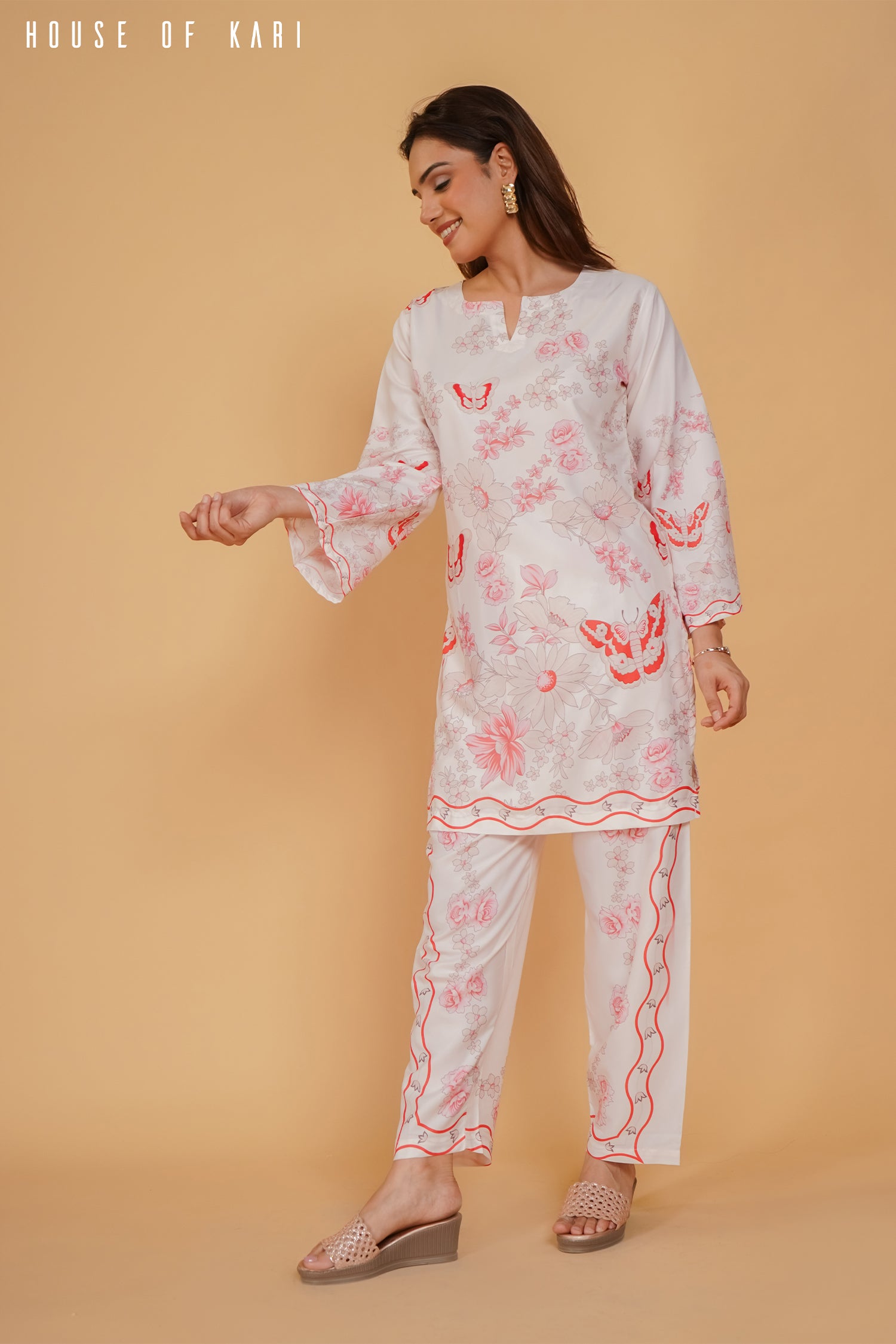 Printkari Poly Muslin Co-ord set in Pink with Red
