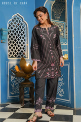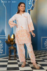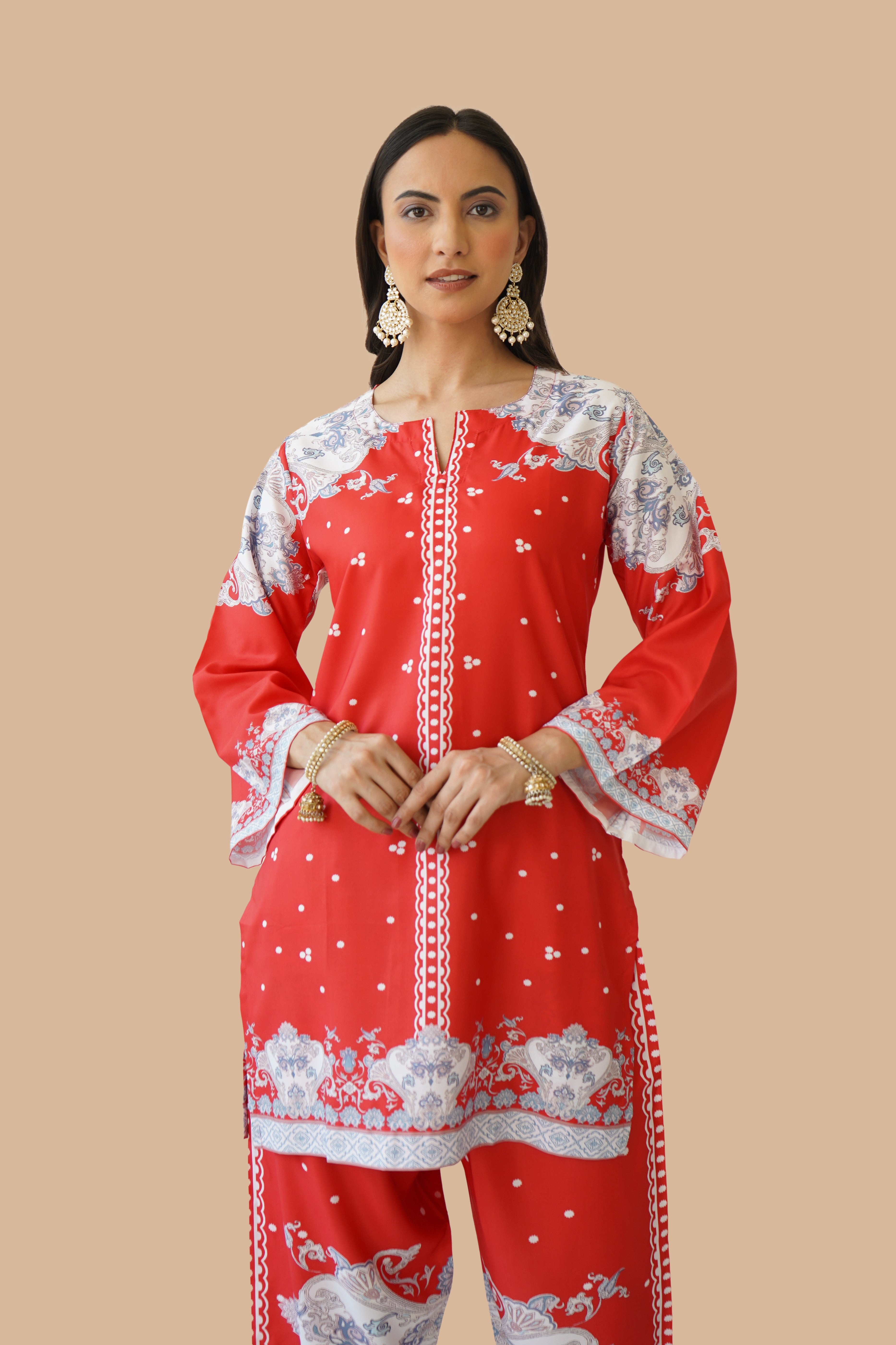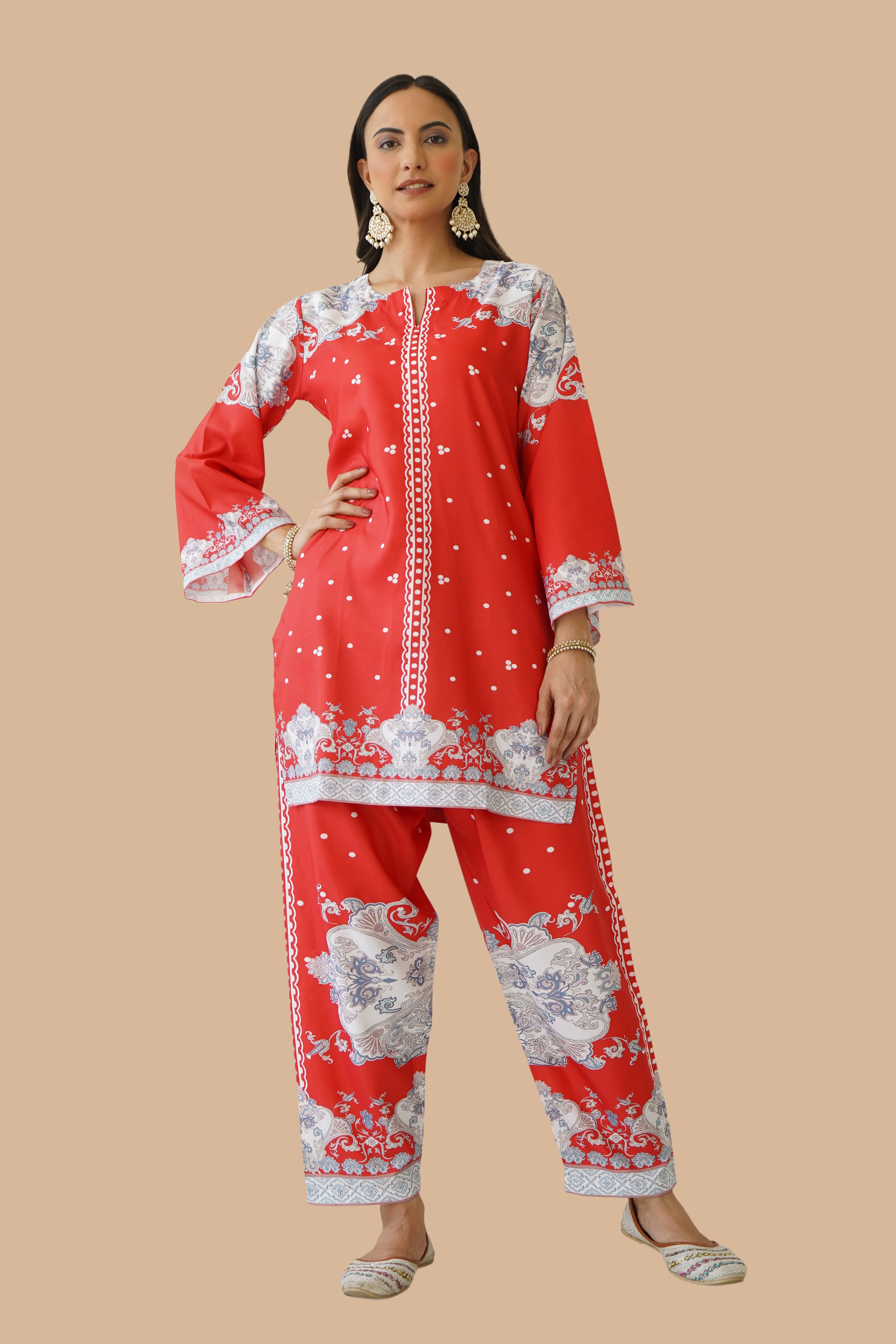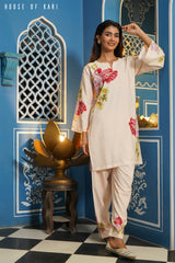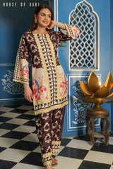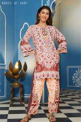Step into effortless elegance with the House of Kari Printed Poly Muslin Co-ord Set, designed to bring a touch of luxury to your everyday and festive wardrobe. Crafted from soft, breathable poly muslin, this set is your go-to for staying stylish and comfortable all season long.