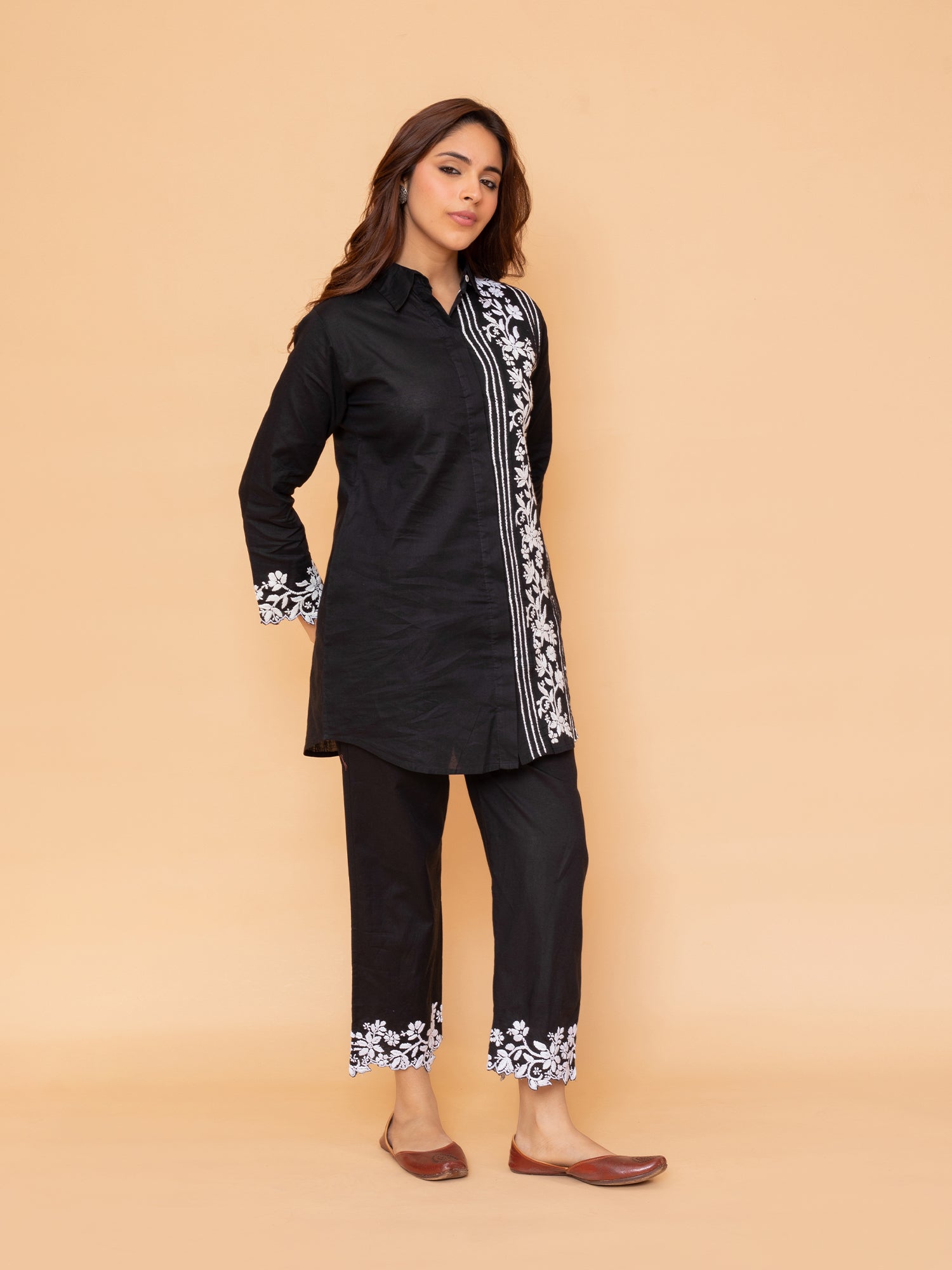 Saba Chikankari Co-ord Set in Cotton Cambric - Black With White
