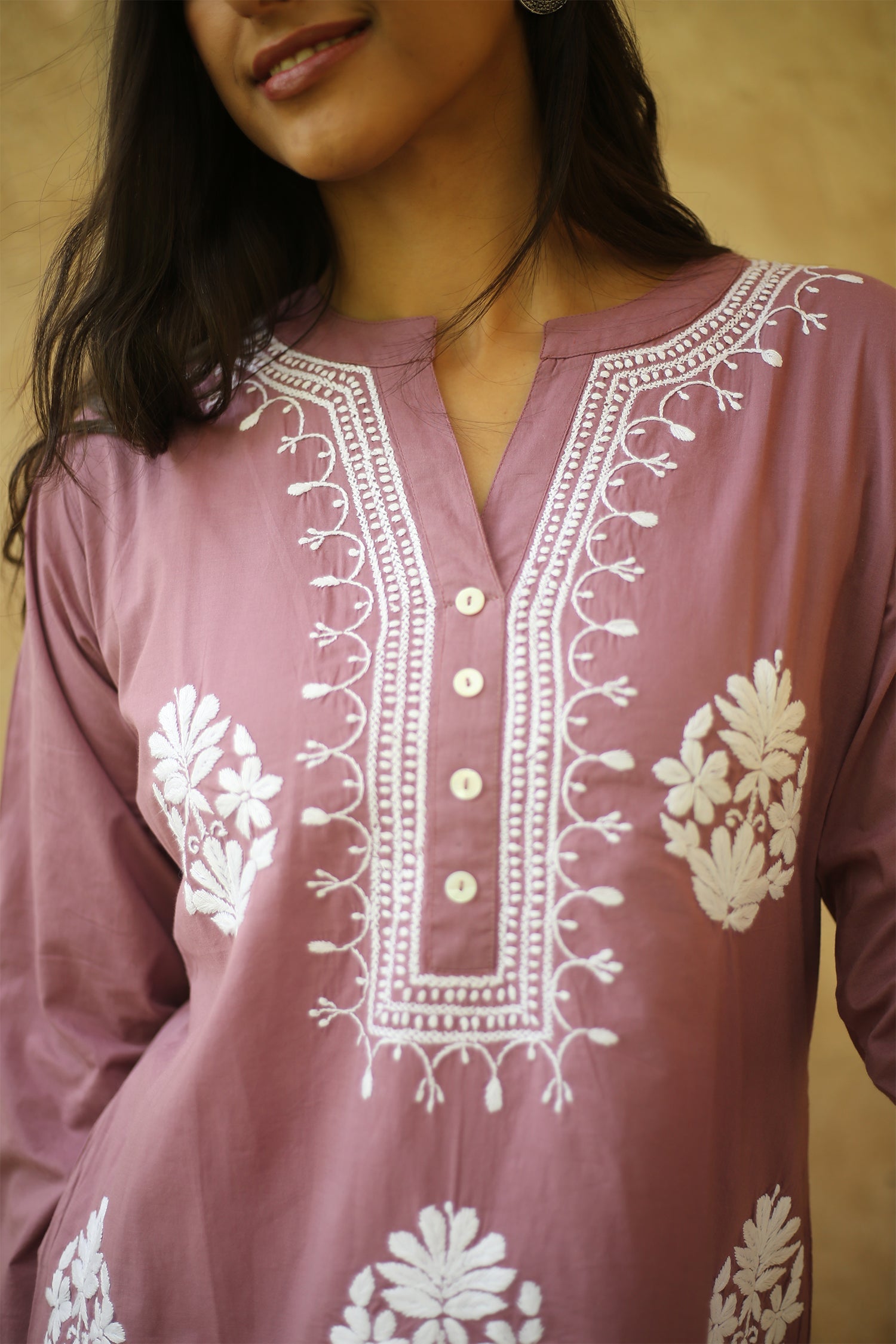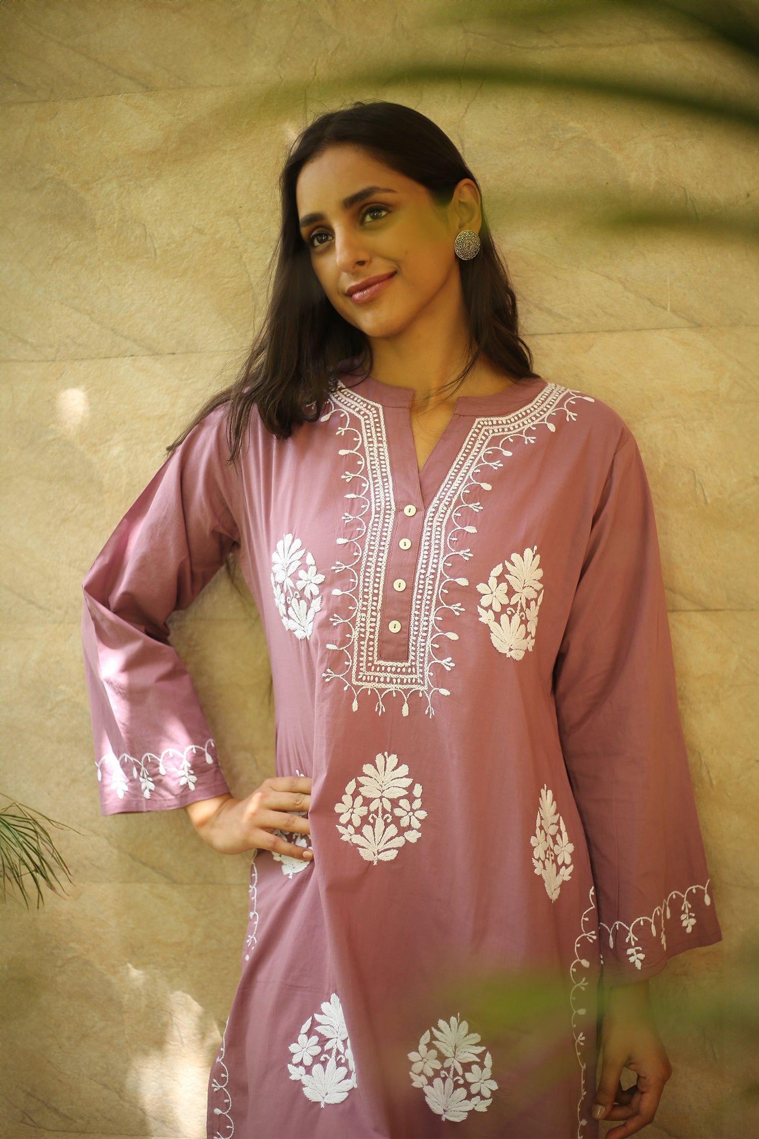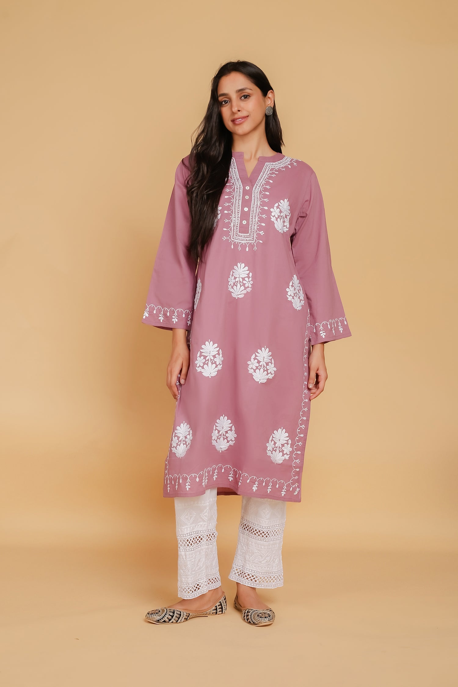Introducing our enchanting Long Chikankari Kurta from the "Saba" collection, meticulously crafted in fine Cambric cotton. Inspired by the serene ambiance of a gentle morning breeze and the warm rays of sunlight, this kurta epitomizes grace and tranquility. Each delicate stitch of Chikankari embroidery tells a story of timeless elegance and artisanal craftsmanship. With its airy fabric and flowing silhouette, this long kurta promises comfort and style, making it the perfect choice for any occasion. Embrace the essence of serenity and sophistication with our Saba collection, where every piece is designed to elevate your wardrobe with effortless charm. Chikankari garments are perfect to pair with your favorite palazzo pants, regular trousers, or even denim, adding an elegant touch to any outfit.