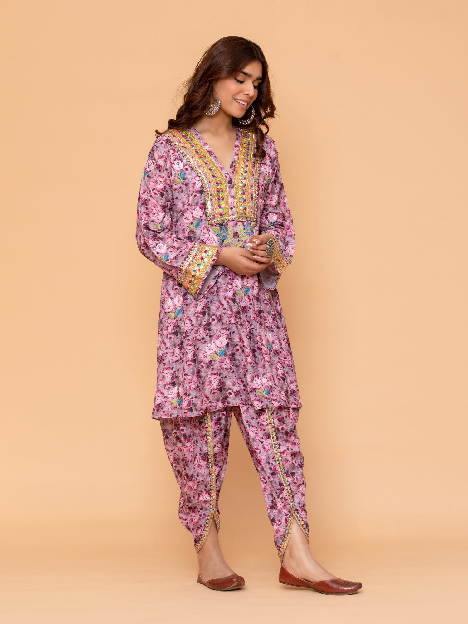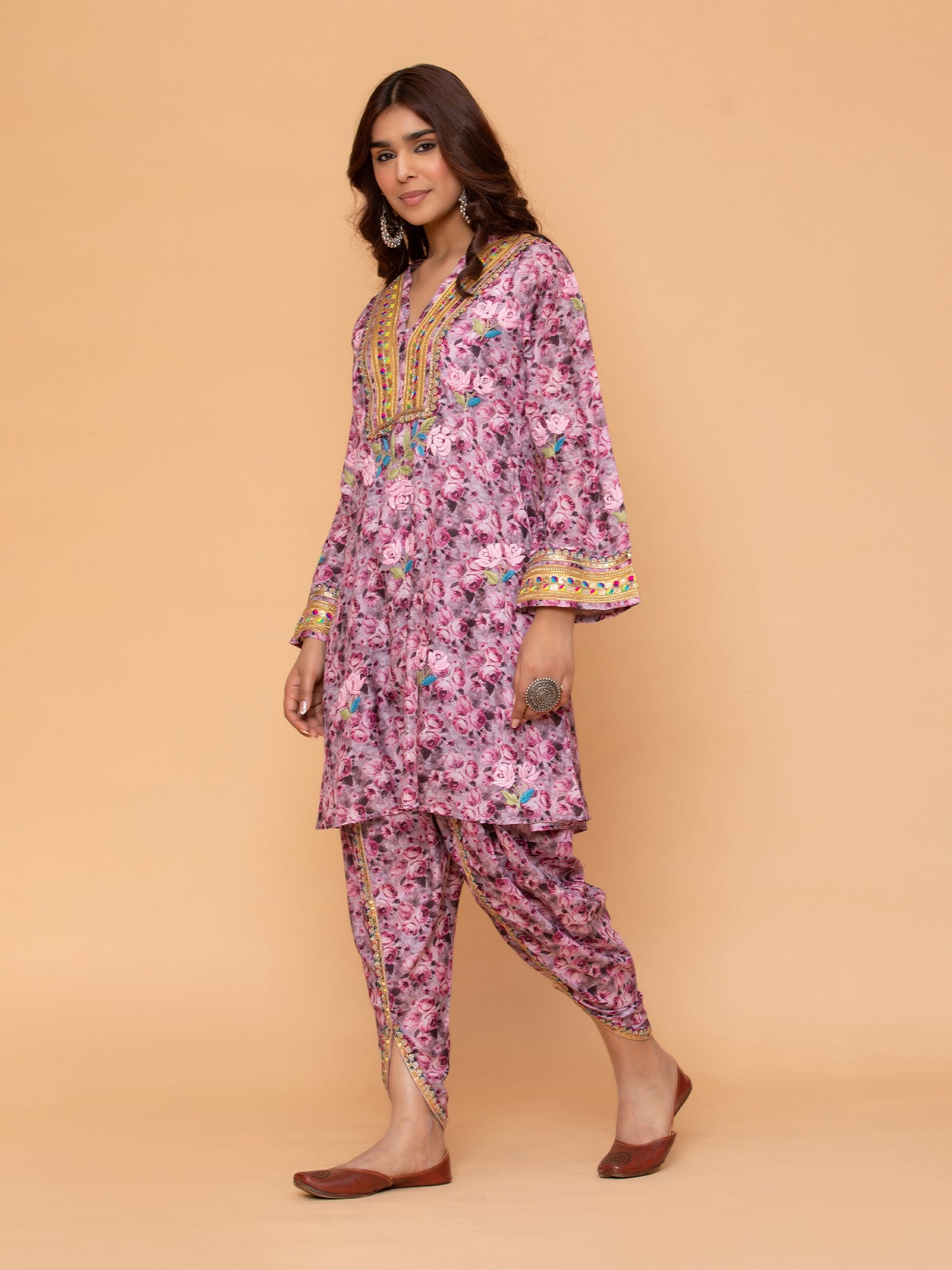 Saba Chikankari Kurta Set in Muslin Silk - Pink