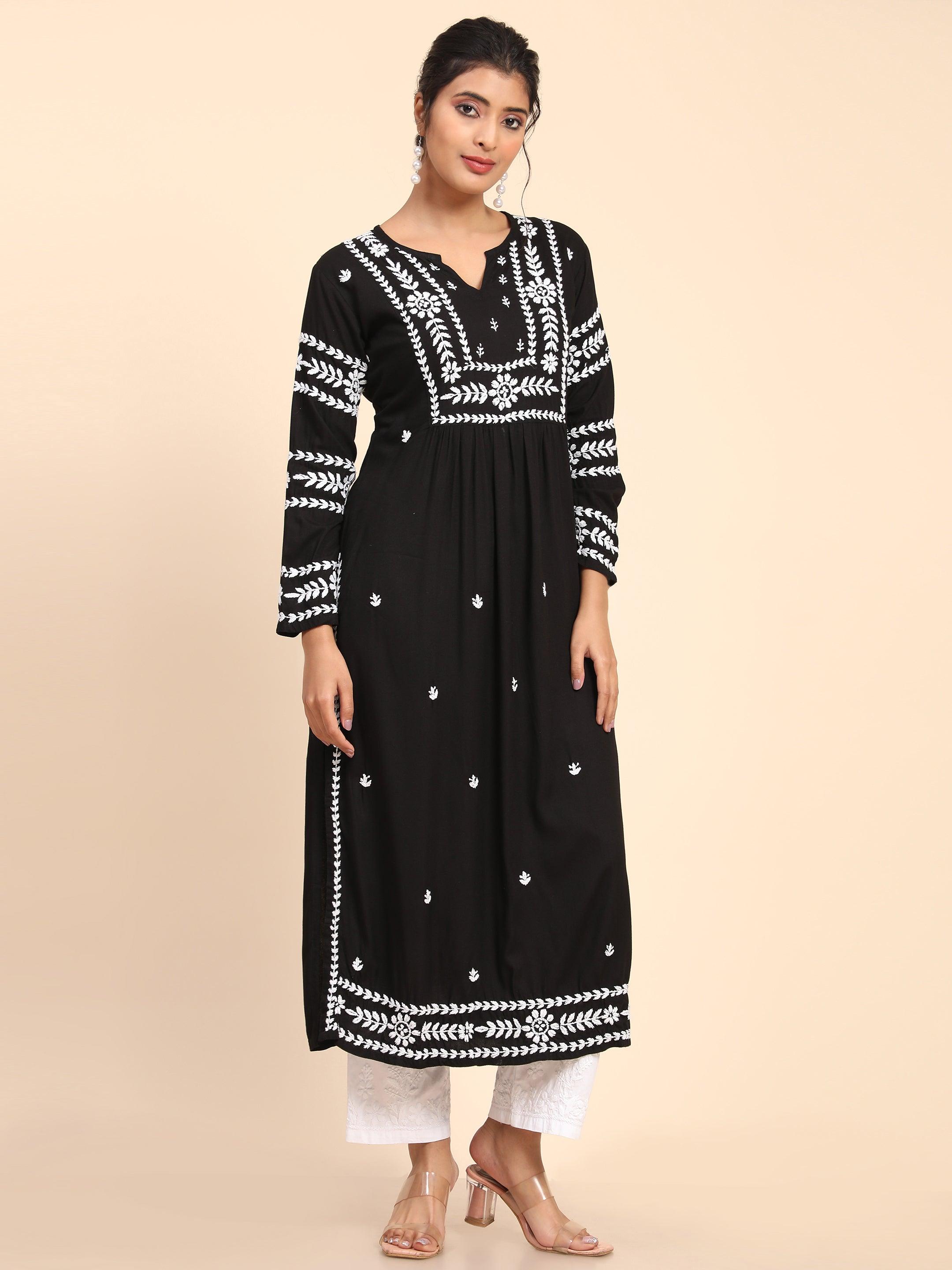 Shreya Jaiswal in HOK chikankari Long Kurta in Rayon Cotton for Women - Black