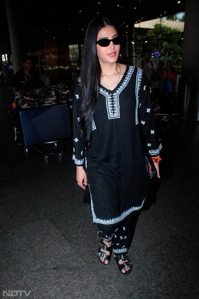 Shruti Hassan in Chikankari Rayon Kurta Set for Women - Black